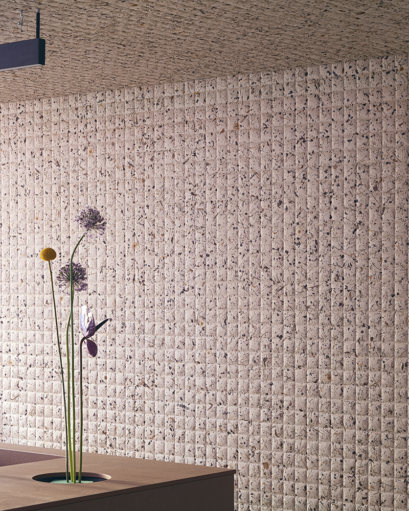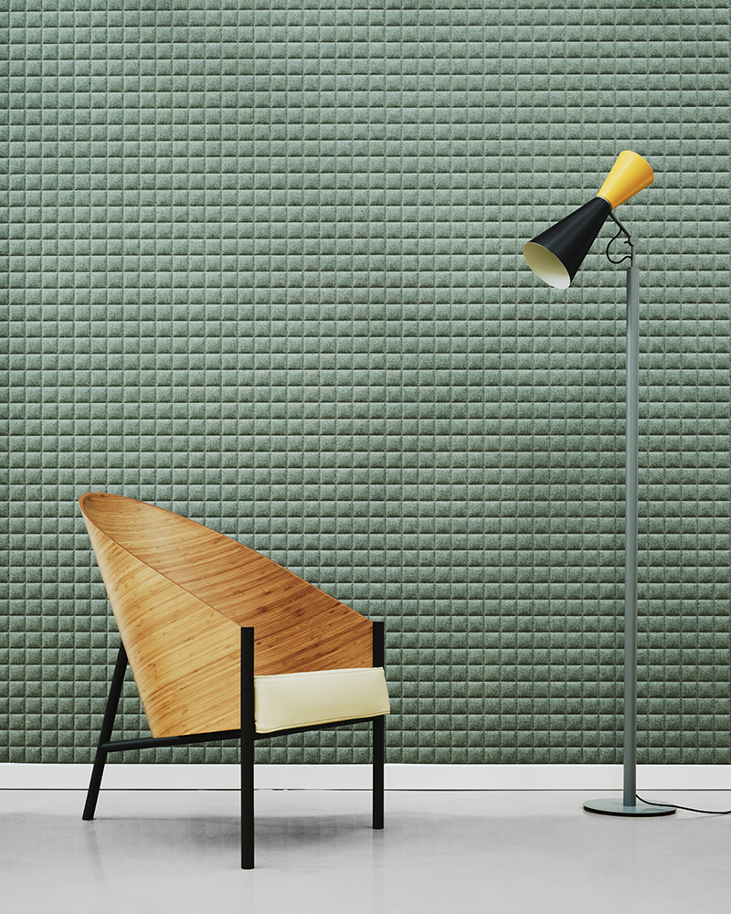 A háromdimenziós struktúra azonban nem csupán dekoratív: javítja az anyag akusztikai teljesítményét, valamint merevséget és stabilitást biztosít még a nagyméretű felületeken is.
