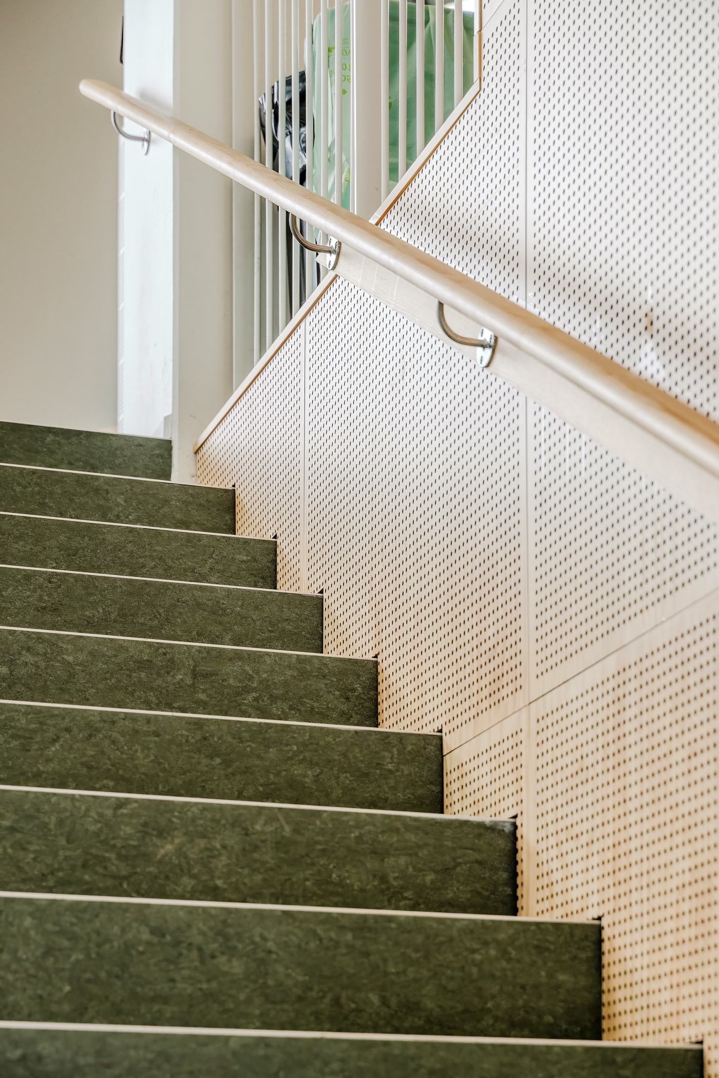 Perfo M típusú Topakustik paneleket használtak hámozott fenyőből, 1000×1000 mm-es méretben. A négyzetes formátumot azért választották, hogy minimalizálják a gyártás és a telepítés során keletkező hulladékot és, hogy rugalmas megoldás biztosítsanak jövőbeli igényekhez karbantartás, vagy fejlesztés esetén.
